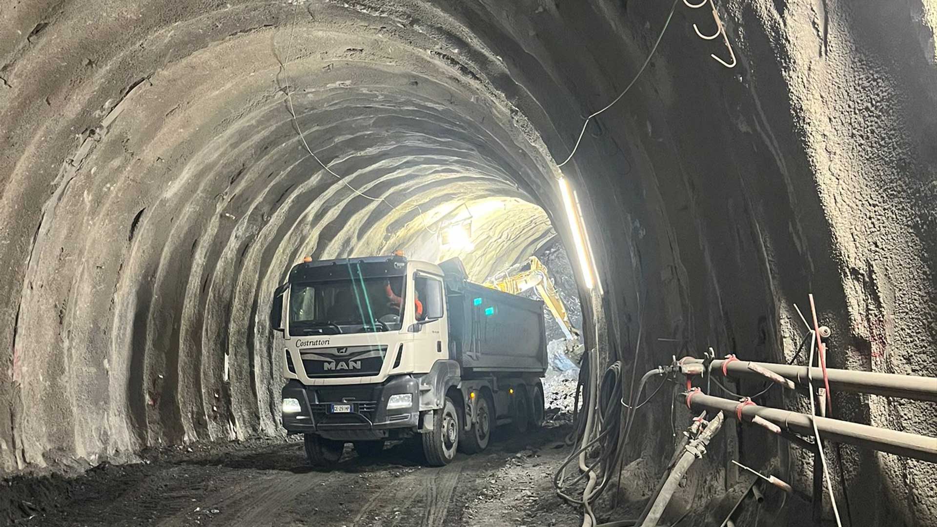 Lavori in sotterraneo: completati gli scavi Gallerie di Valico. In corso di completamento scavo dei bypass di collegamento e realizzazione dei rivestimenti definitivi.