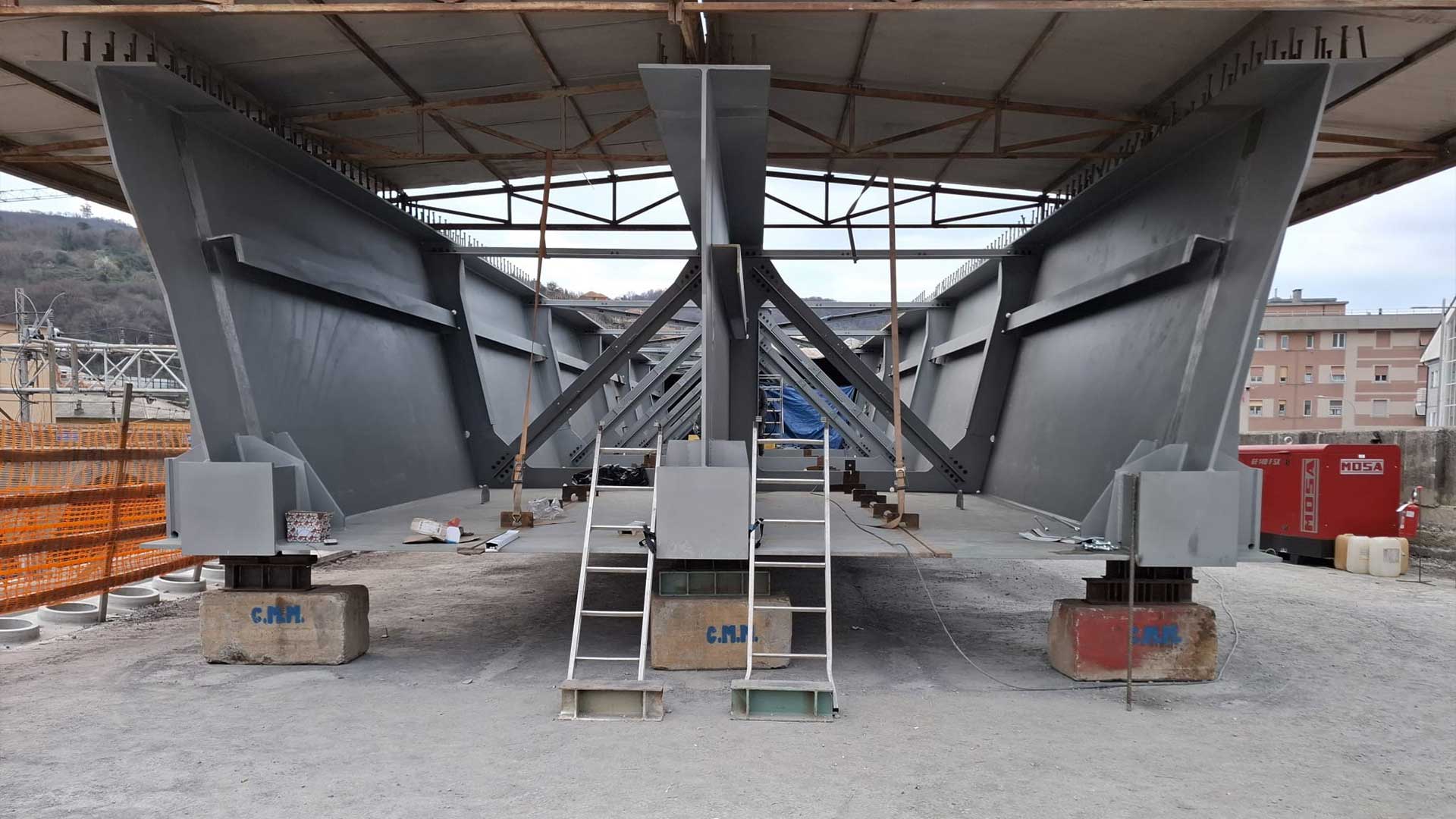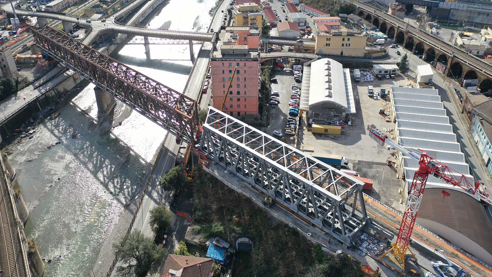 Il viadotto ferroviario che scavalca il torrente Polcevera è composto da tre campate: una centrale di 90 m e due laterali di 76,50 m ciascuna. Si tratta di una struttura a via inferiore con travata reticolare in acciaio, realizzata nel 1906, a singolo binario, che non risulta compatibile con gli attuali standard di sicurezza per l’esercizio ferroviario, a causa del marcato degrado strutturale riconducibile alla vetustà dell’opera. Per garantire la futura attivazione di una linea a doppio binario, sarà effettuato un intervento che prevede la completa demolizione dell’impalcato esistente e la posa di un nuovo impalcato metallico.