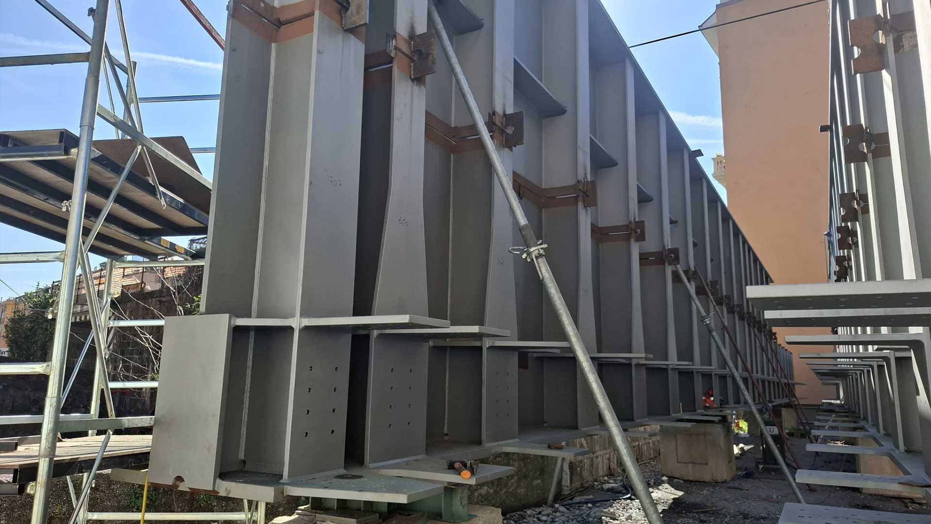- assemblaggio del nuovo impalcato metallico reticolare;