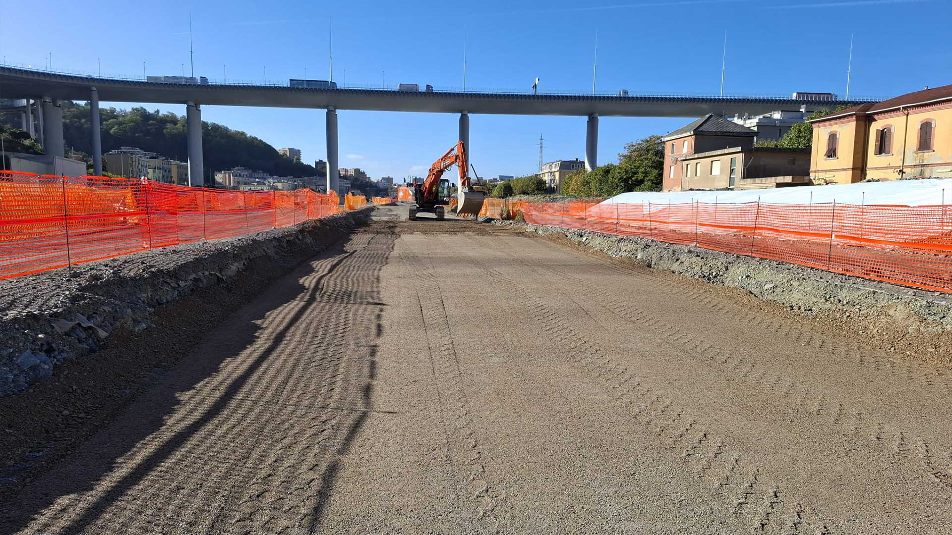 - Il primo tratto è costituito da un rilevato ferroviario e dal Ponte Polcevera in attraversamento all’omonimo corso d’acqua. Il tratto di rilevato verrà ripristinato e consolidato, mentre il viadotto esistente verrà sostituito a seguito di rinforzi strutturali delle spalle e delle pile attualmente esistenti.